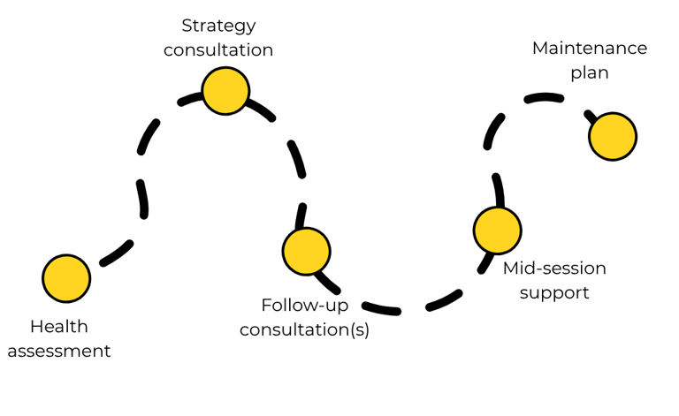 We start with an in-depth consultation exploring your health history, lifestyle, and nutrition. This gives us a complete picture before creating your plan.
