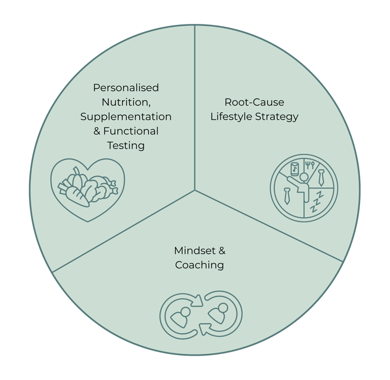By combining these three areas, we can work together to uncover patterns that contribute to your symptoms and create a practical, sustainable plan that supports your wellbeing — one step at a time.